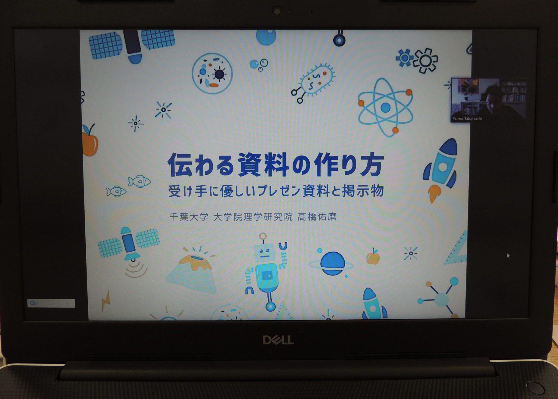 今回は、オフィス伝わるより、高橋佑磨氏(千葉大学大学院 理学研究院 特任助教)を講師として招聘しました。セミナーでは、「脱自己流 !! 伝わる資料の作り方。受け手に優しいプレゼン資料と掲示物」と題して、資料作成に役立つフォントの選び方や文章のレイアウトのルール、見やすい図形や写真などについてご教授いただきました。質疑応答の時間には参加者から多くの質問があり、講師の高橋先生から熱心な指導をいただきました。
