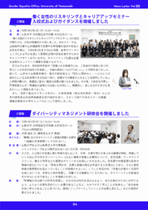 また、「夏休み理工系体験イベント」や、「働く女性のリスキリングとキャリアアップセミナー入校式」などについてのご報告を掲載しています。