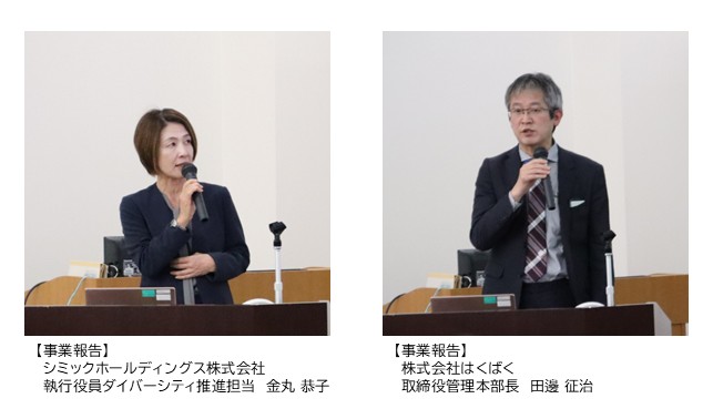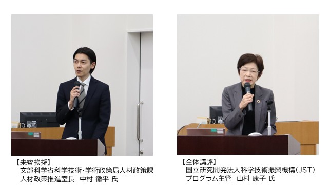 本報告会は、共同実施機関であるシミックホールディングス株式会社、株式会社はくばくとの共催により、来賓に文部科学省科学技術・学術政策局人材政策課 人材政策推進室長 中村徹平 氏をお迎えして開催し、学内外から対面およびオンラインで合わせて60名が参加しました。