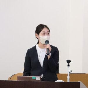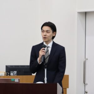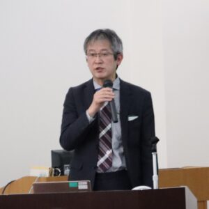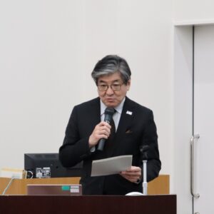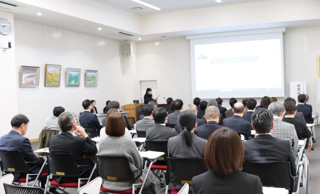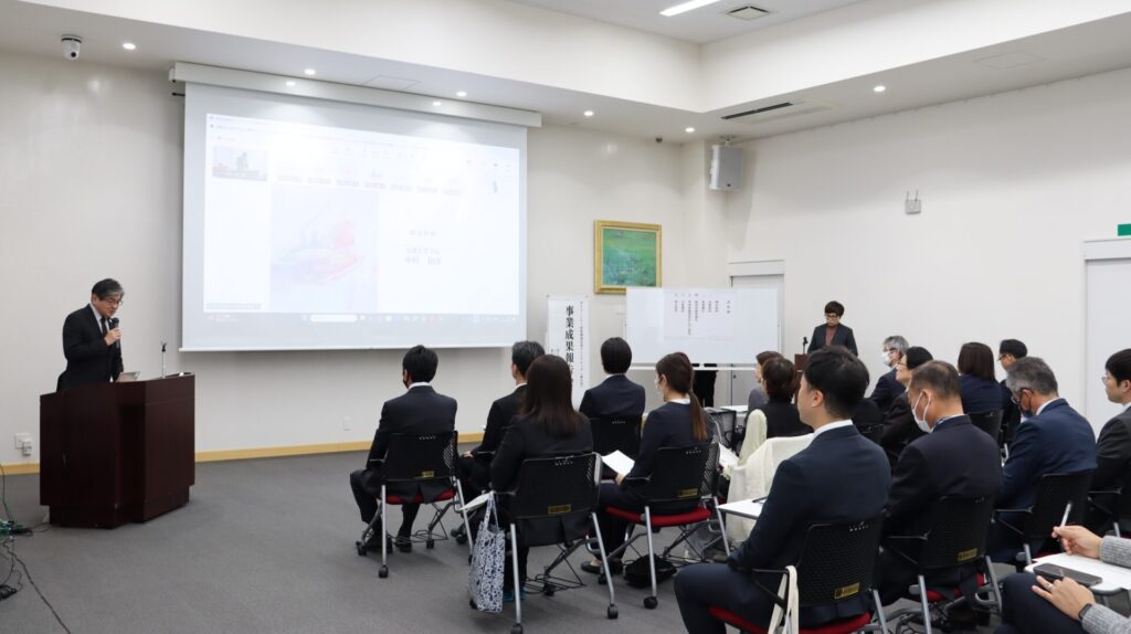 本報告会は、共同実施機関であるシミックホールディングス株式会社、株式会社はくばくとの共催により、来賓に文部科学省科学技術・学術政策局人材政策課 人材政策推進室長 中村徹平 氏をお迎えして開催し、学内外から対面およびオンラインで合わせて60名が参加しました。