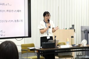 受講生からは「パントマイムを通して和気藹々と話すことができ、今後のセミナーへの不安がぐっと減った。自分の良いところを書いていただいた紙は、いつでも見られるように持ち歩きたい。」「相手が柔軟に受け止められる言葉ばかりをチョイスしていた気がするので、自分の気持ちを適切に相手に伝えることを意識した言葉選びもしていきたい。」などの感想をいただきました。