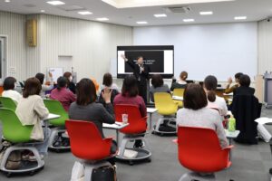 令和7年12月3日(水)、甲府キャンパス 工業会館3階会議室において、働く女性のリスキリングとキャリアアップセミナー「ウェルビーイング講座」を開催しました。講師にNPO法人SECIプレイス 顧問の大岡明先生をお迎えし、「社会人女性のためのWell-beingと、キャリア継続のためのKaizenと心理的安全性」についての講義を行いました。